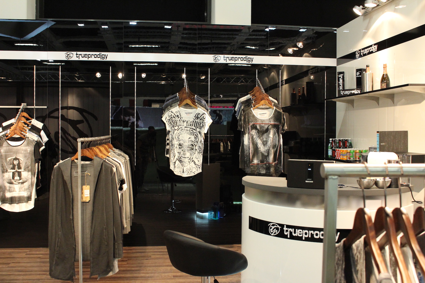 Das Modelabel TRUEPRODIGY setzte zum wiederholten Male auf unser Full Service Versprechen und ließ den kompletten Berliner Messeauftritt durch uns abwickeln. Dabei reichte unser Service bis ins kleinste Detail, wie zum Beispiel den Plexiglas Tischdisplays oder den Edelstahl Aufhängungen der Kleiderbügel.